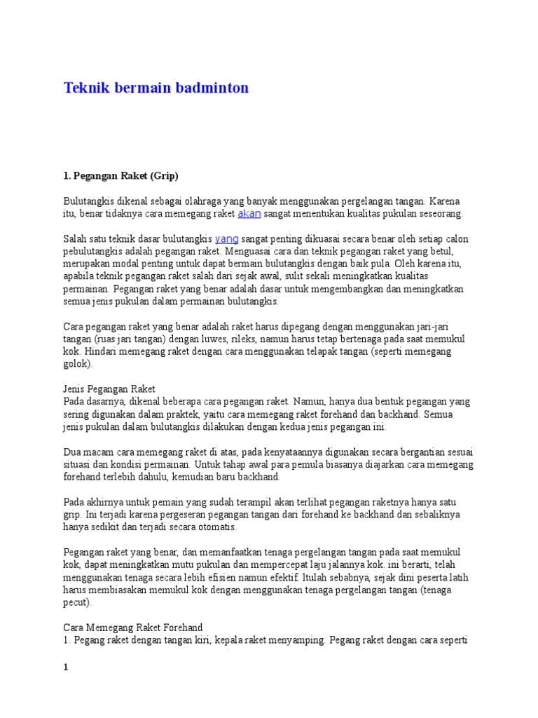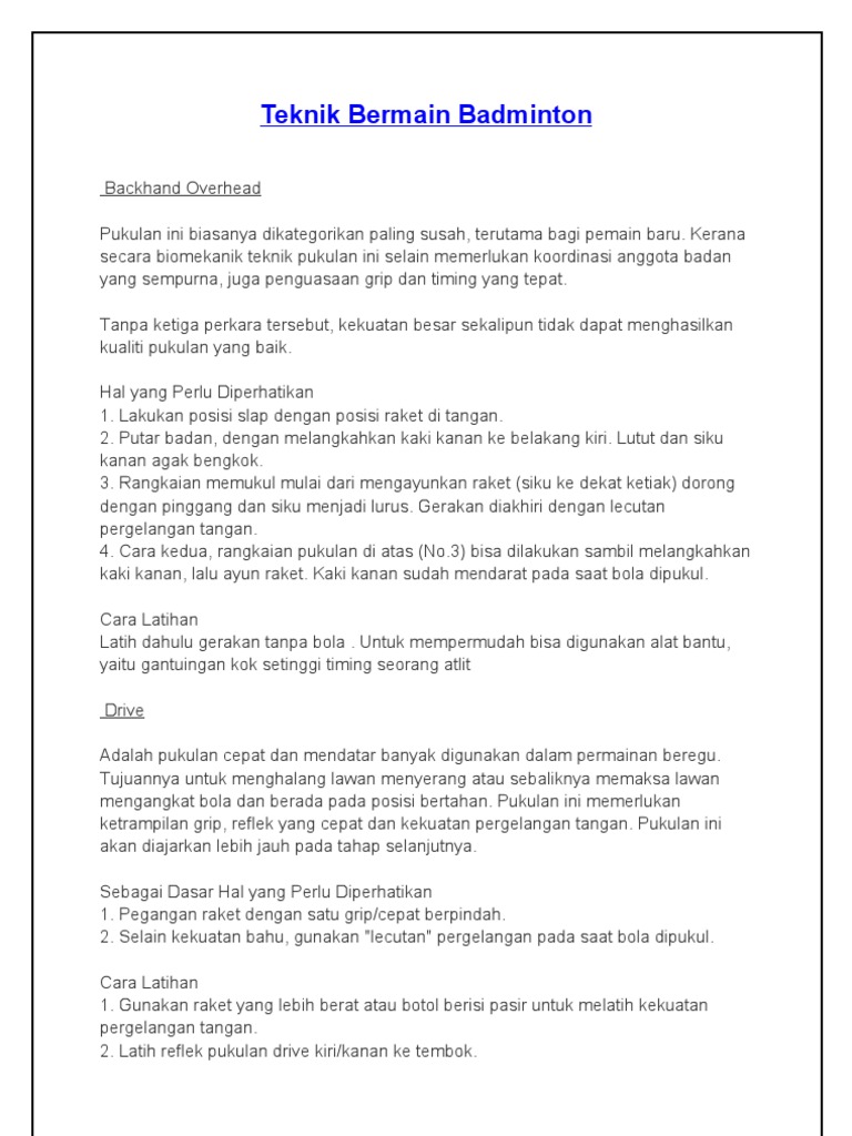 Cara bermain net bola tipis badminton, cara bermain badminton ini dilakukan dengan cara di ulang ulang,, sampai langkah kaki. Pemain muda perlu belajar bermain badminton dengan raket yang dibuat sesuai ukuran tubuhnya. Dengan cara memilih raket yang tepat maka teknik dan kemampuan bermain anda akan menjadi lebih maksimal. Badminton merupakan sejenis sukan raket yang dimainkan oleh sama ada dua orang pemain bertentangan (perseorangan) ataupun dua pasangan bertentangan (beregu), yang mana posisi pemain ialah. Siapa yang tidak mahu bermain permainan raket terpantas di dunia?